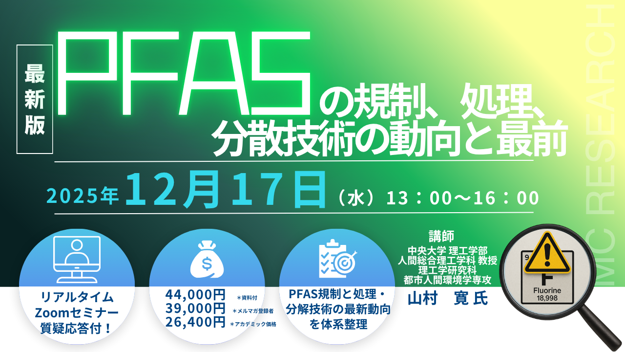 【ライブ配信/ZOOM】「PFASの規制、処理、分解技術の動向と最前」セミナー開催!12月17日(水)主催:(株)シーエムシー・リサーチ