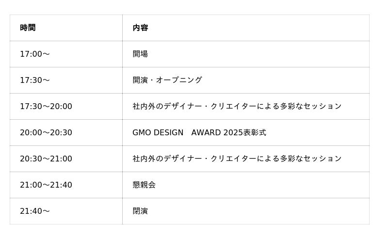 また、本イベント内においてGMOインターネットグループが主催するAI活用のデザインコンテスト「GMO DESIGN AWARD 2025」の表彰式も行います。各部門の最優秀賞をはじめとする受賞者を表彰し、次世代を担うデザイナー・クリエイターたちの創造力を讃えます。