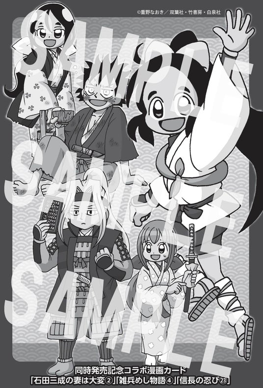 『石田三成の妻は大変』2巻(双葉社)、『信長の忍び』23巻(白泉社)、『雑兵めし物語』4巻(竹書房)の3作品が10月29日に同時発売。重野なおき作品3冊同時発売を記念して、各作品に内容の異なる初回限定描き下ろしコラボ漫画カードを封入!