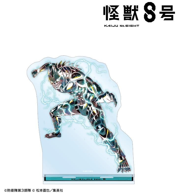 怪獣8号、日比野カフカ、市川レノ、四ノ宮キコル、亜白ミナ、保科宗四郎、鳴海弦、古橋伊春、四ノ宮功、怪獣9号のイラストを新たなタッチで魅力的に表現し、BIGなアクリルスタンドに仕上げました。