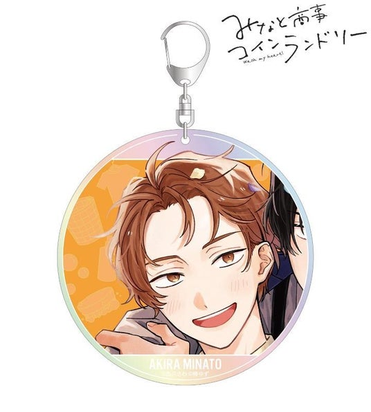 湊 晃、香月 慎太郎のカラーイラスト、ランドリー店をイメージしたモチーフをオーロラBIGアクリルキーホルダーに仕上げました。