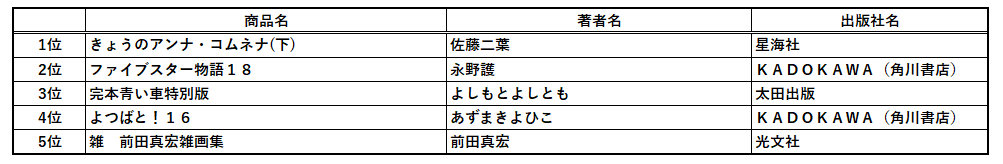 そんななか、「きょうのアンナ・コムネナ」「完本青い車特別版」など、まだまだ世間に広く知られていない作品も大きく数字を伸ばしました。