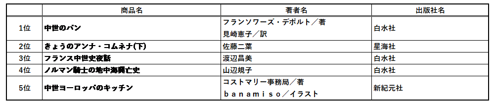 中世におけるパンとパンをとりまく文化や社会を語った名著が1位を獲得!