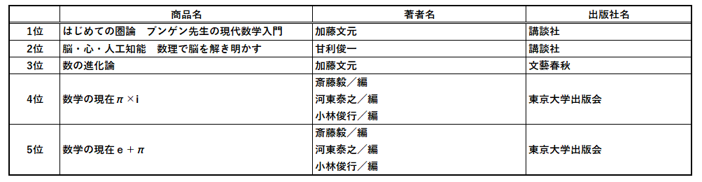 講談社ブルーバックスの加藤文元先生の『はじめての圏論』が10月発売にもかかわらず堂々の1位に輝きました。