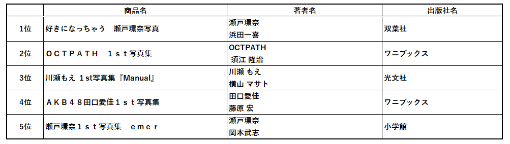 ■ アイドル・写真集 ベスト5
