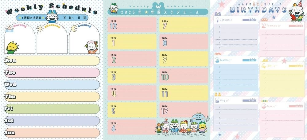 ウィークリースケジュール、年間スケジュール、さらにはバースデイメモもついた充実の内容で、あなたの2026年をバックアップ★
