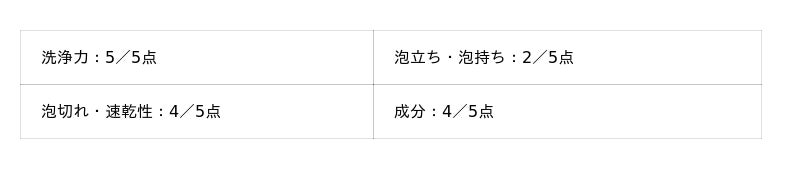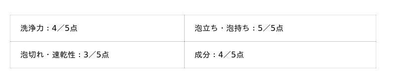 - 泡立ち・泡持ち:5点満点