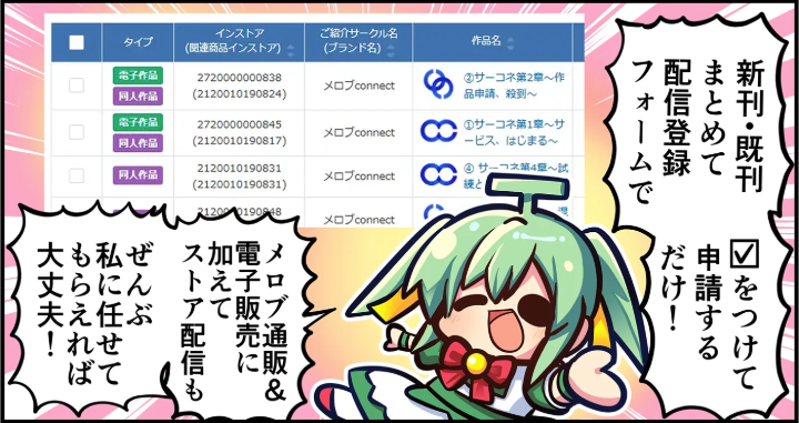 株式会社メロンブックス(本社:東京都文京区湯島、代表取締役社長:松井 大祐)は、電子書籍の取次としてクリエイターの皆様の作品を100以上の提携ストアへ登録・販売を代行する新サービス「サークルコネクト」を、2025年11月27日にリリースいたしました。