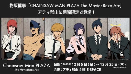 TOHOピクス株式会社(本社:福島県郡山市、代表:馬場 栄一郎)が運営する商業施設「アティ郡山」では、2025年12月5日(金)から12月25日(木)まで、大ヒット公開中の「劇場版 チェンソーマン レゼ編」のPOP UP SHOP『CHAINSAW MAN PLAZA TheMovie:RezeArc』を開催いたします。