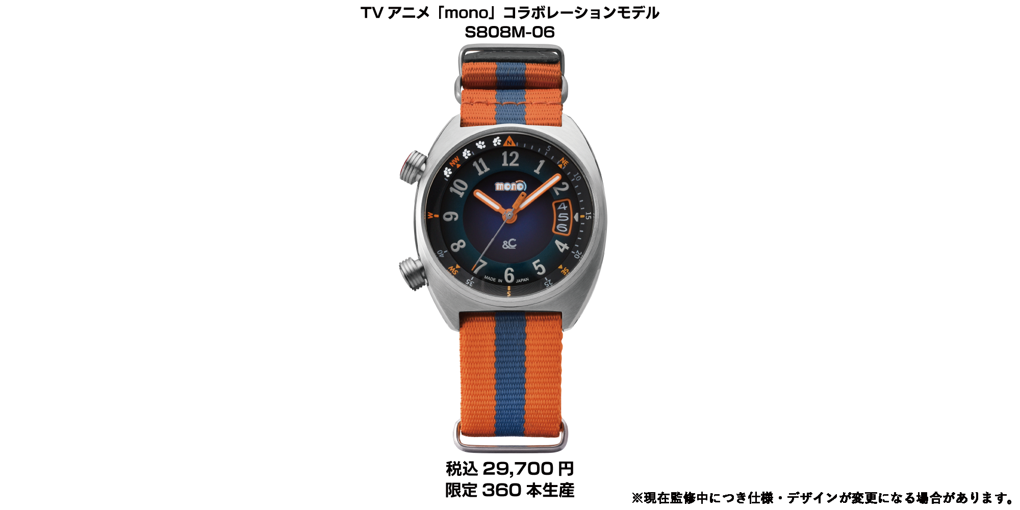 最新作では、TVアニメ「mono」とのコラボレーションウォッチを発表。