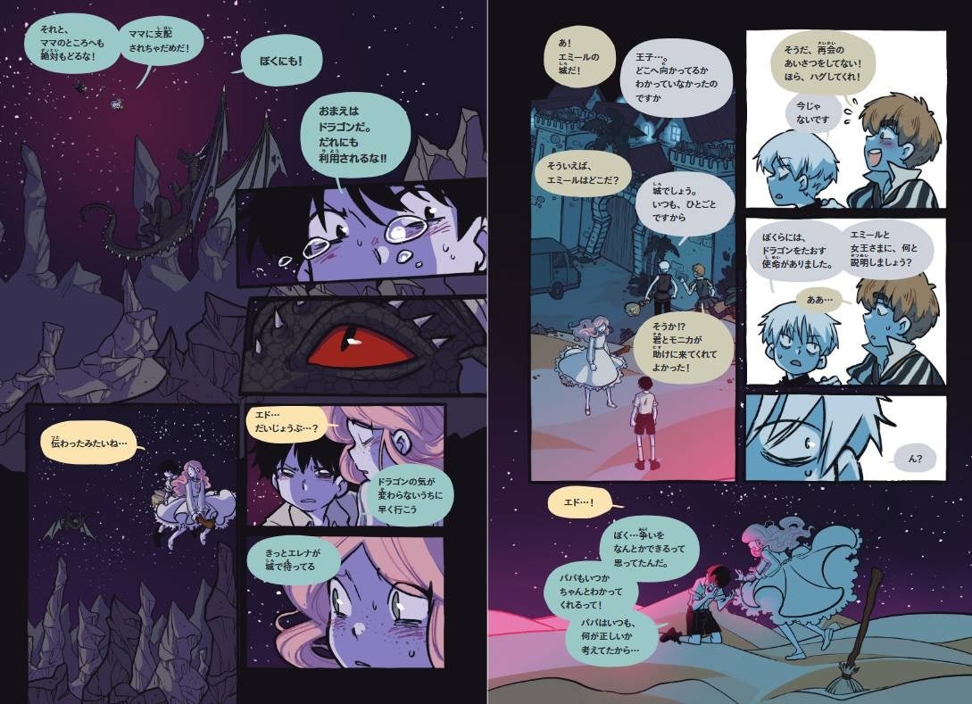 「魔法使いと人間の対立、それをめぐる主人公たちの思いに、わたしはどきどきしながら訳しました。4巻では、大人たちがますます混乱していく一方で、子どもたちは、互いの違いをこえて友情を深めていきます。エレナとエドは、長く続く戦いを終わらせることができるのでしょうか? どうぞご期待ください」■中井はるの