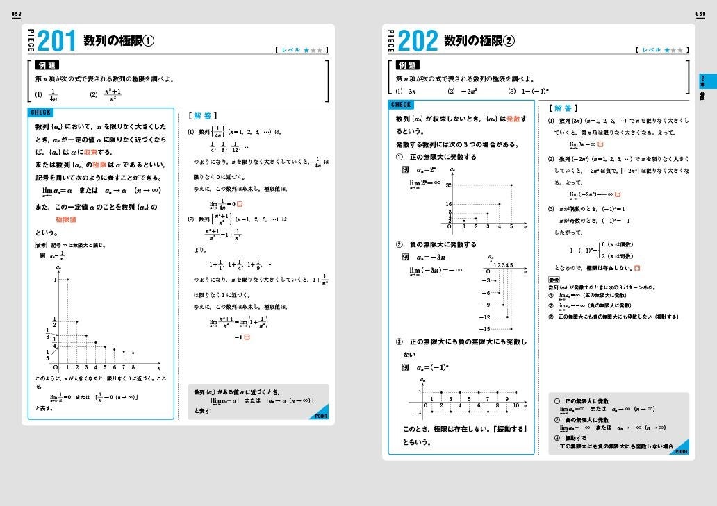 また、教科書レベルの基礎知識を補完する「PIECE」も充実。難易度の高い「数III・C」の内容も、スモールステップで無理なく積み上げられる構成になっています。