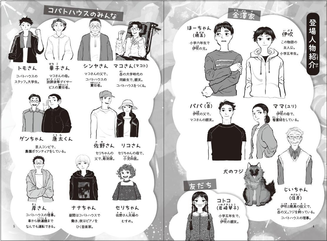 老若男女、さらに犬や猫たちもふくめ、みながお互いを認めあい、助けあいながら生きていく――そんな多様な存在が共に生きる世界をえがいた作品です。