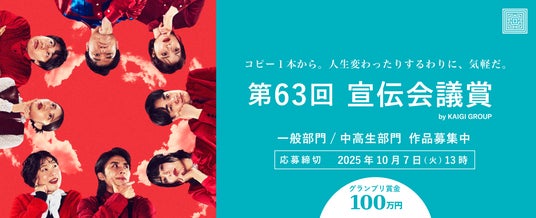 株式会社宣伝会議(本社:東京都港区)が主催する、日本最大規模の公募広告賞である第63回「宣伝会議賞」の応募を10月7日に締め切りました。応募総数は一般部門56万4909点となりました。