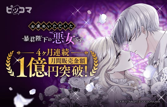 株式会社カカオピッコマ(本社:東京都港区、代表取締役社長:金在龍)が運営する電子マンガ・ノベルサービス「ピッコマ」において、独占配信中のソラジマ大人気SMARTOON(R)️『お求めいただいた暴君陛下の悪女です』が、2024年12月~2025年3月まで月間販売金額4ヶ月連続1億円、最高1.5億円(※1)を突破したことをお知らせします。