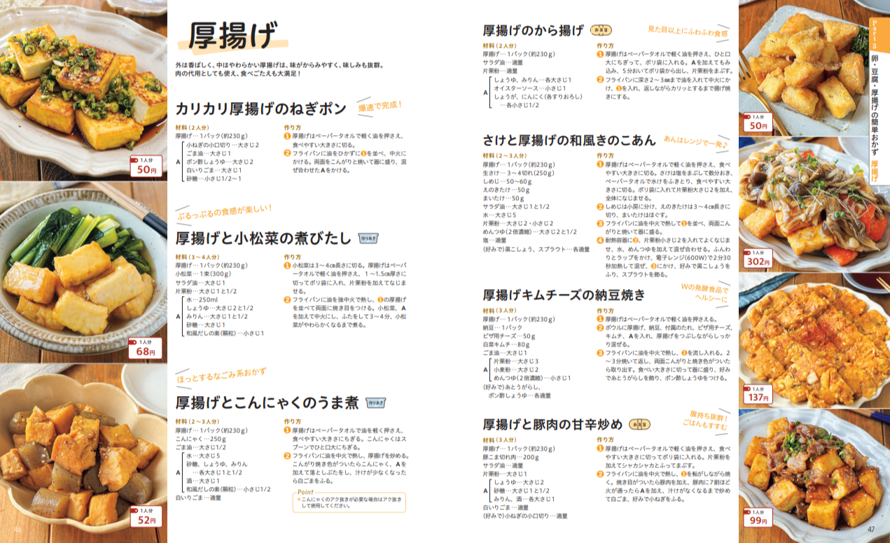 家計に優しく、体にもうれしいタンパク質がたっぷり摂れる卵・豆腐・厚揚げを使ったレシピも充実。ちょっとした副菜からガッツリ大満足の主菜までそろっているので、毎日の食卓にぜひ取り入れてください。