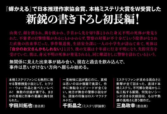 山奥で、顔を潰され、歯を抜かれ、手首から先を切り落とされた死体が発見された。不審者の目撃情報があるにもかかわらず、警察の対応が不十分だという投書がなされた直後、上層部がピリピリしている最中の出来事だった。