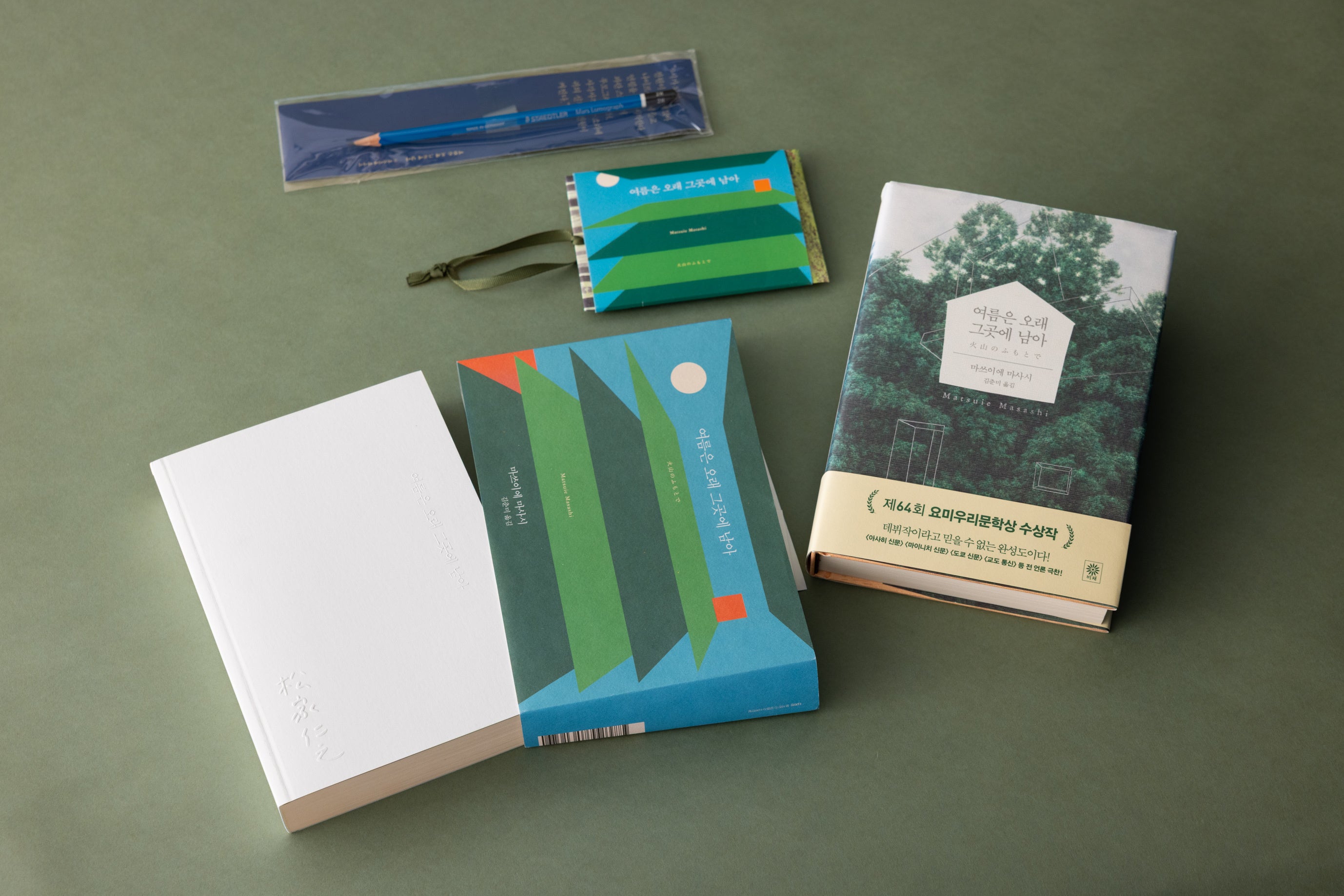 韓国ではとりわけ大きな話題となり、12万部を超える大ヒット(題:여름은 오래 그곳에 남아/訳:김춘미 번역)となりました。現地ではノベルティグッズや特装版も登場し、今年8月には大手書店チェーン「教保文庫」の「21世紀の名作50冊」にも選ばれています。