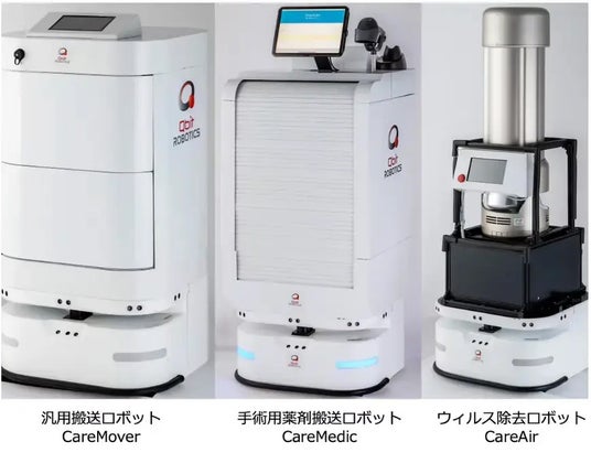 そこで、院内の小型荷物や書類などを運搬する「CareMover(ケアムーバー)」、 手術用の薬剤を運搬する「CareMedic(ケアメディック)」、 ウィルス除去ロボット「CareAir(ケアエア)」の3種をサブスクサービスをリリースいたしました。 これらが医療現場に導入されることで、医師や看護師の業務負担を軽減するほか、院内の空気環境を改善し、健康リスクを低減する役割を果たします。