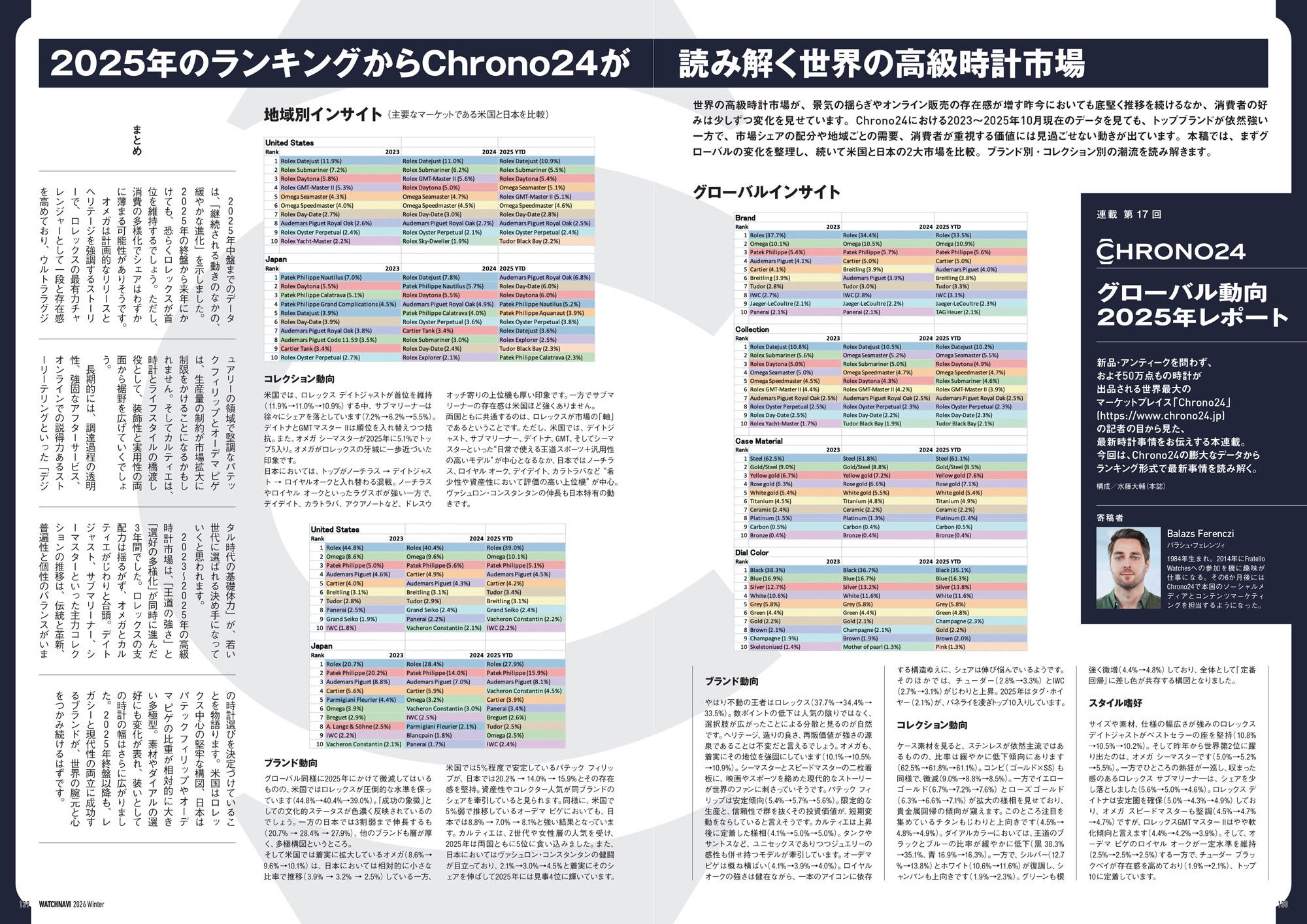 さらに21世紀から急速に普及していったマニュファクチュールムーブメントの進化の系譜からトレンドを読み解くコラムや歴代編集長からの特別寄稿、有名正規店店長による次世代定番大予測など、新旧織り交ぜた情報満載のスペシャル企画となっています。