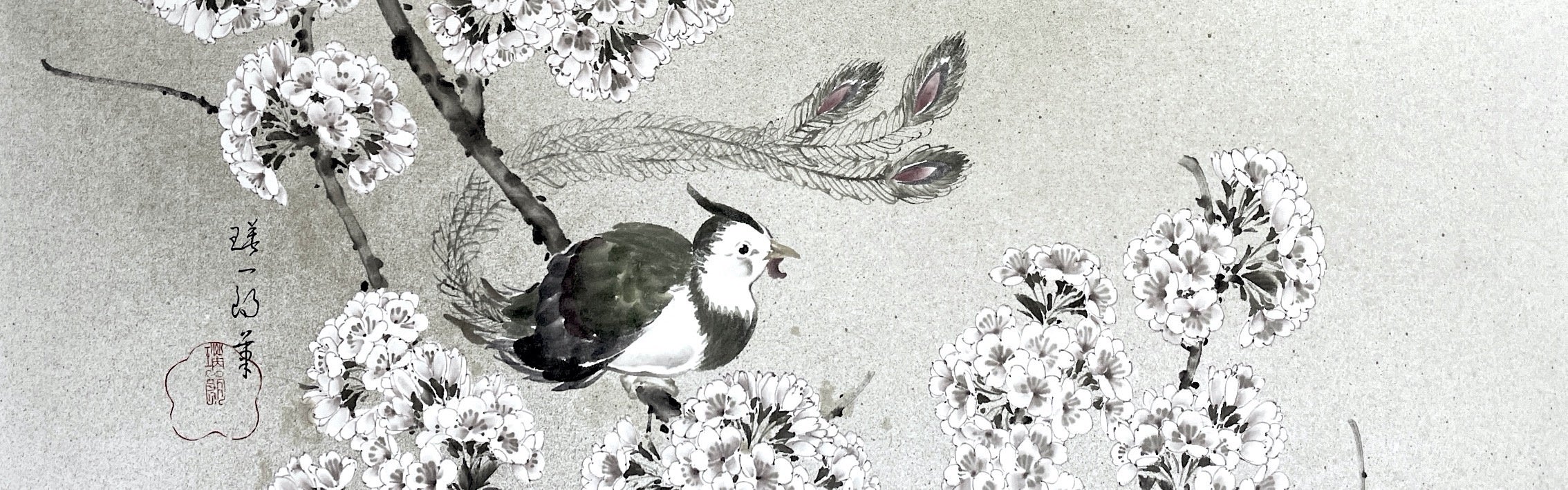 『桜に鳳凰II』 墨 顔彩 和紙 25×80cm