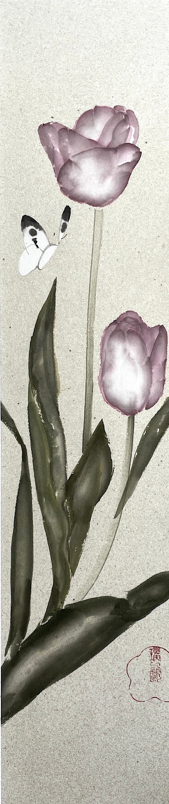 『鬱金香』(うっこんこう)=チューリップ 墨 顔彩 和紙 65×20cm