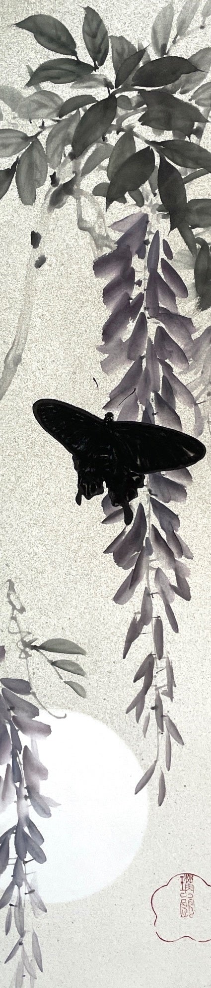 『藤に蝶III』 墨 顔彩 和紙 70×15cm