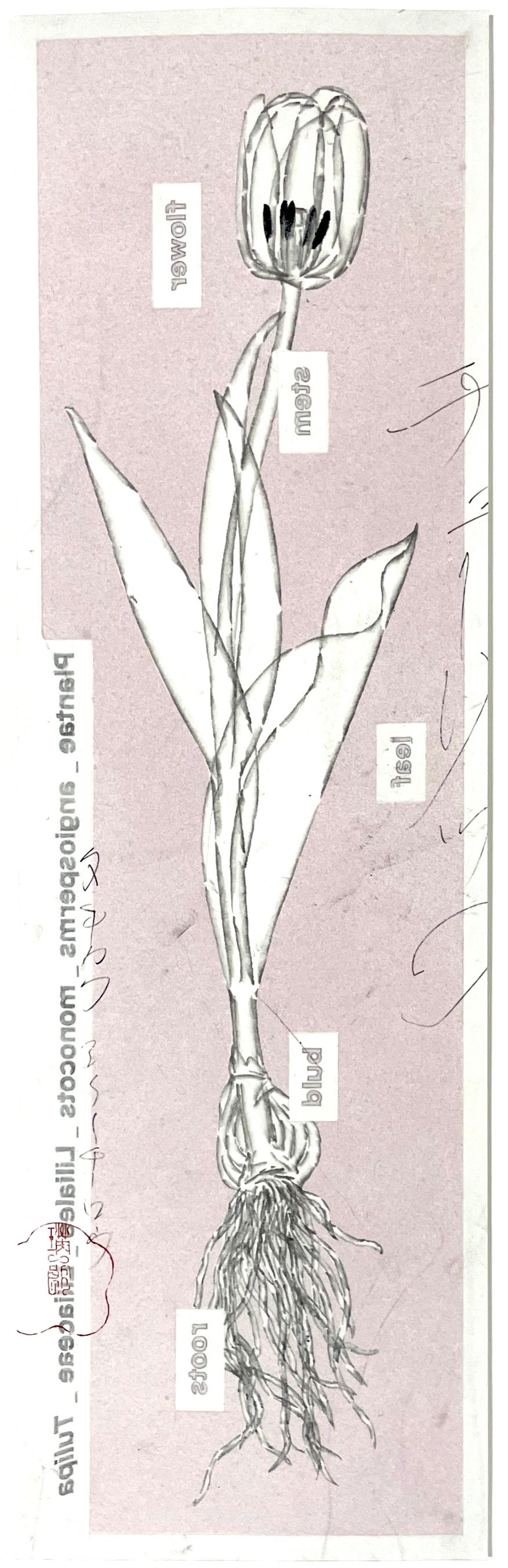 『チューリップI』 墨 顔彩 和紙 70×15cm