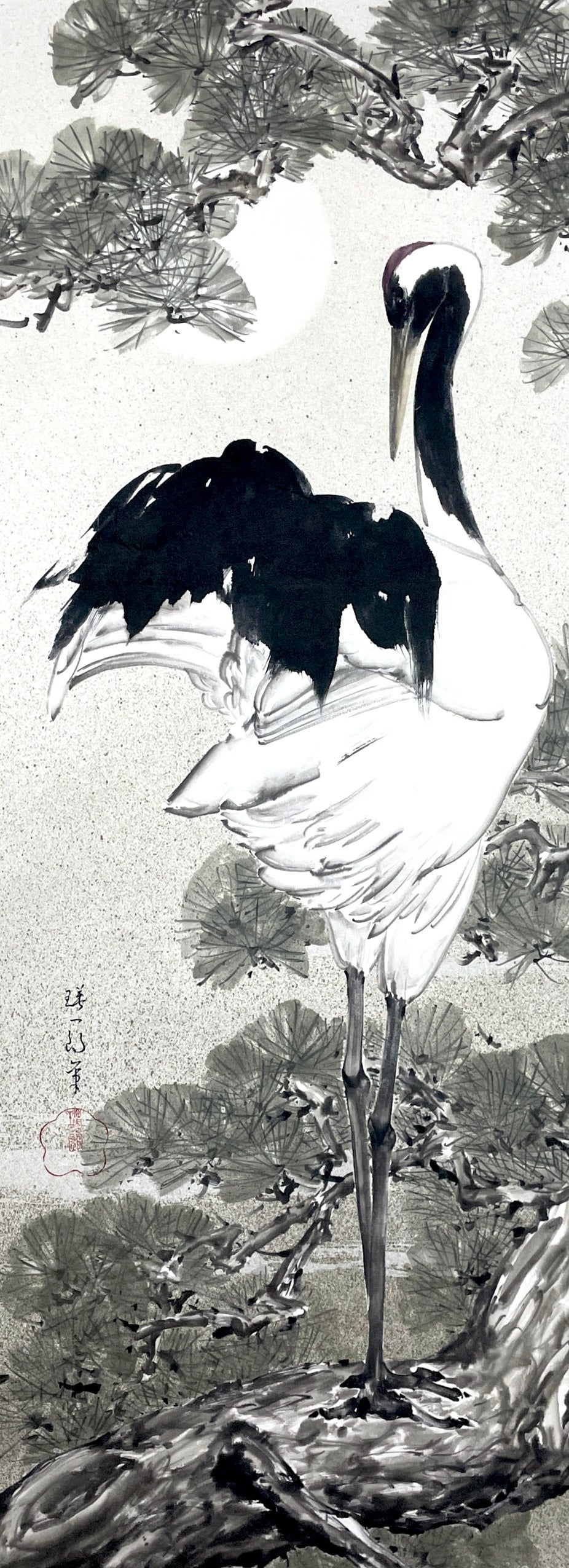 『松鶴図』 墨 和紙 110×40cm
