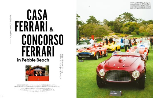 2025年の秋号では表紙と巻頭グラビアに849テスタロッサを収録。1956年に登場した500TR以来、代々伝説のネーミングとなっているテスタロッサが遂に復活しました。ベルリネッタ、スパイダー、アセットフィオラーノの各モデルを全26ページにて詳細をレポートしています。またペブルビーチ・コンクールデレガンス2025より、250LM、240アメリカーナなどの往年の受賞車両を解説。ペブルビーチを彩るヴィンテージ・フェラーリの美しさをご堪能いただきます。
