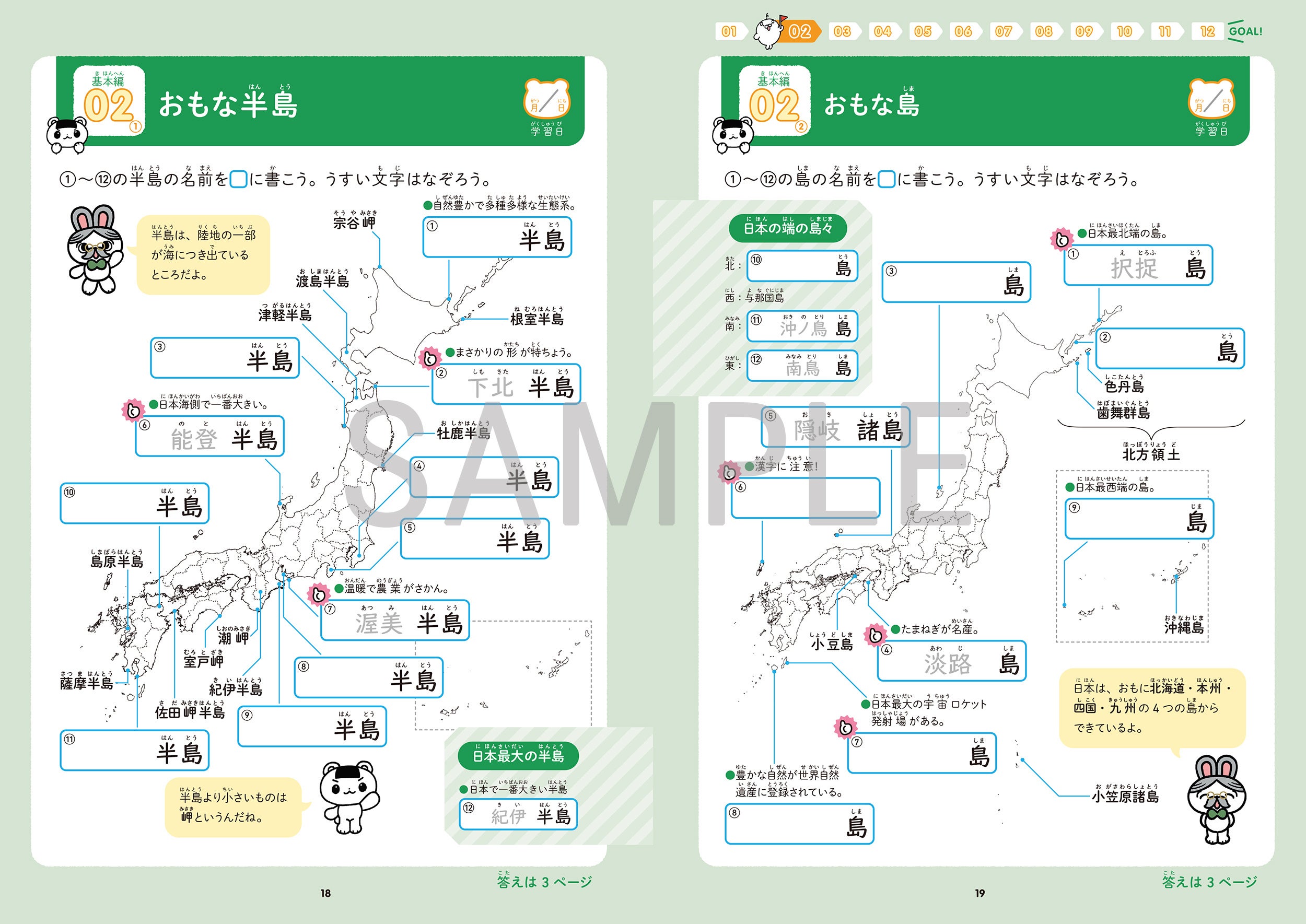 小学校中学年から取り組みやすい、見やすい紙面設計。