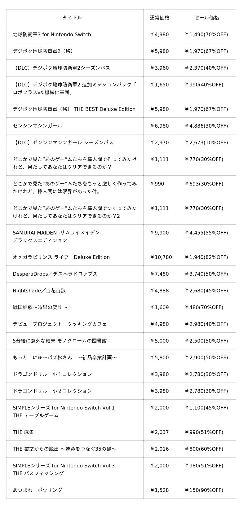 大幅割引のニンテンドーeショップセール実施中!