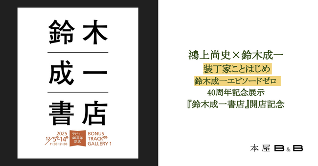 株式会社散歩社下北沢BONUS TRACK GALLERY 1にて開催される鈴木成一デビュー40周年記念展示「鈴木成一書店」開店記念イベント第5弾として、12月12日に鴻上尚史氏を迎えたトークイベ…